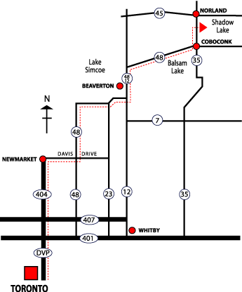 Shadow Lake is located less than 2 hours from Toronto, in the City of Kawartha Lakes, just 5km north of the town of Coboconk on Highway 35.